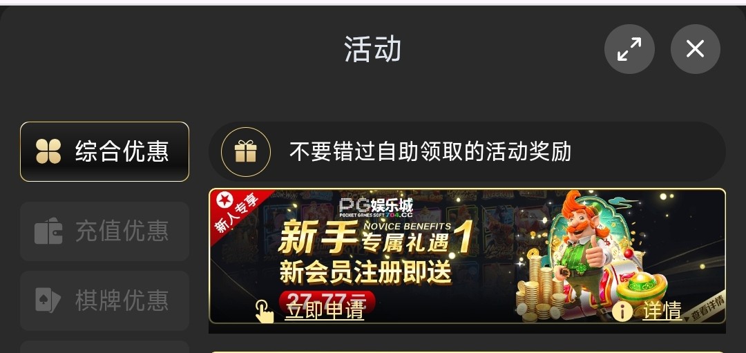 下载APP注册账号绑定银行卡跟姓名,在活动里找到“新手专属礼遇1”在里面申请,彩金5倍流水仅限娱乐PG电子,满100提现
